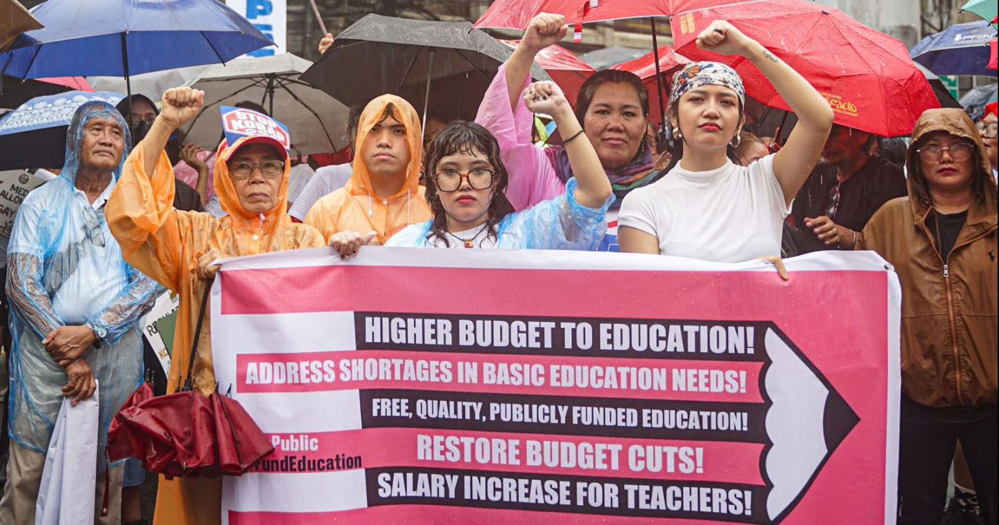 Ahead of World Teachers’ Day, teachers and students at the call of the Alliance of Concerned Teachers Philippines (ACT-Philippines) walked out of their classes and gathered near the presidential offices in Manila on October 3rd. They demanded decent pay, salary increases, classrooms and learning resources and an end to corruption. Key slogans were: “Higher budget for education!”; “Address shortages in basic education!”; “Free, quality, publicly funded education!”; and “Salary increase for teachers!”