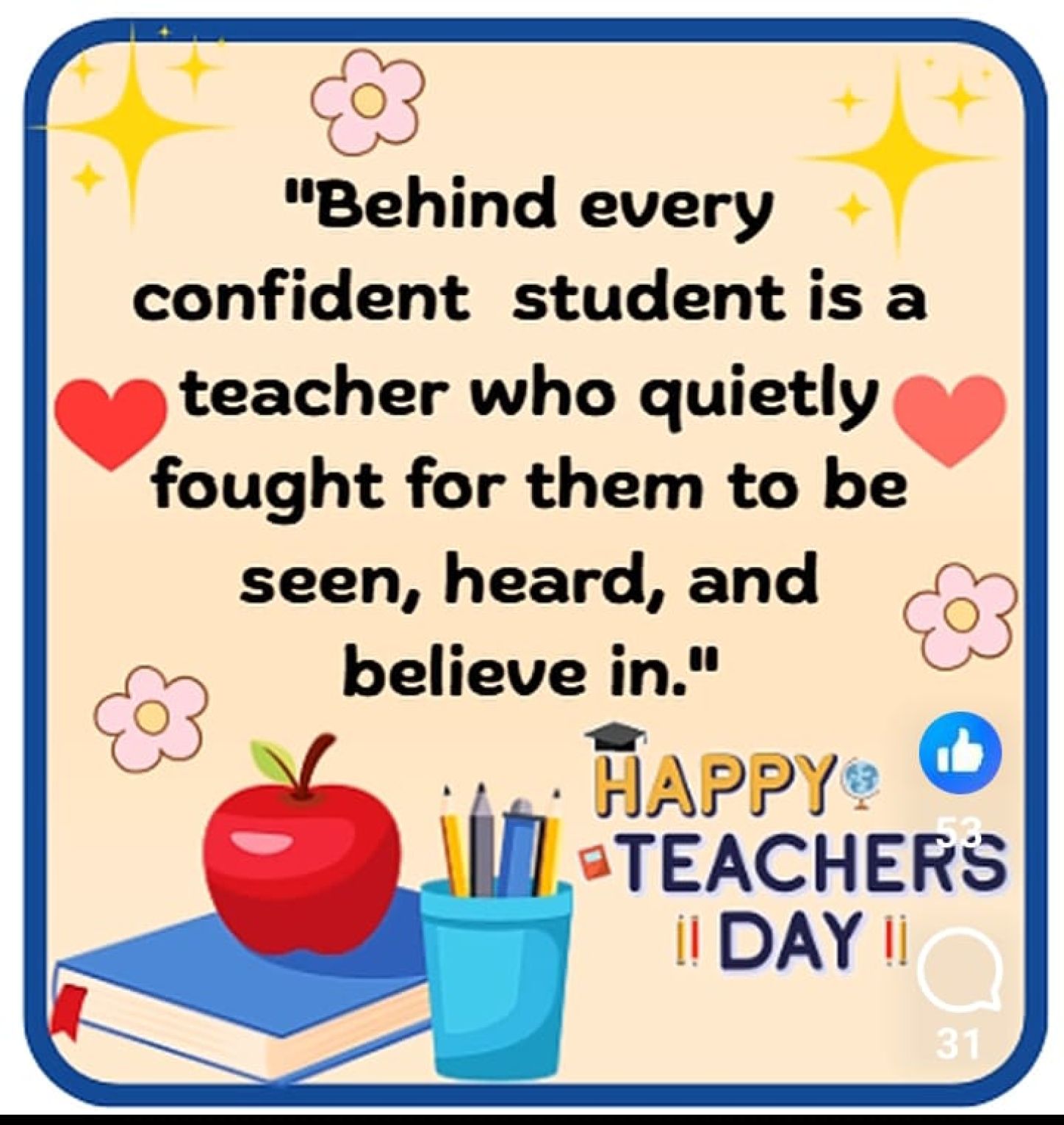 On this World Teachers’ Day, she wrote, “we salute everyone who has made the classroom a space of freedom, not a wall of memorization.”
