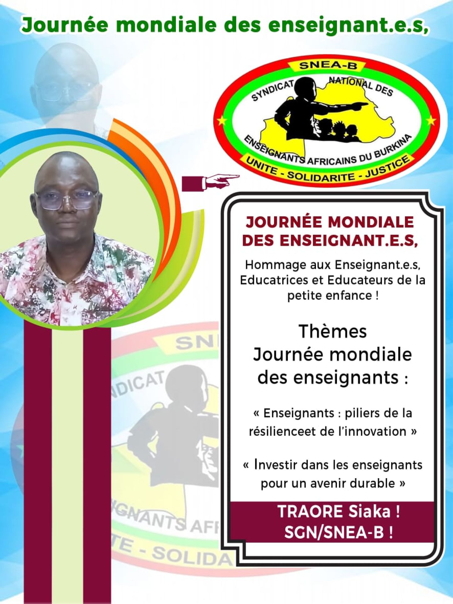 In Burkina Faso, the Syndicat national des enseignants africains - Burkina (SNEA-B) organized a tribute to early childhood teachers and educators, with the following themes: "Teachers: pillar of resilience and innovation" and "Investing in teachers for a sustainable future."