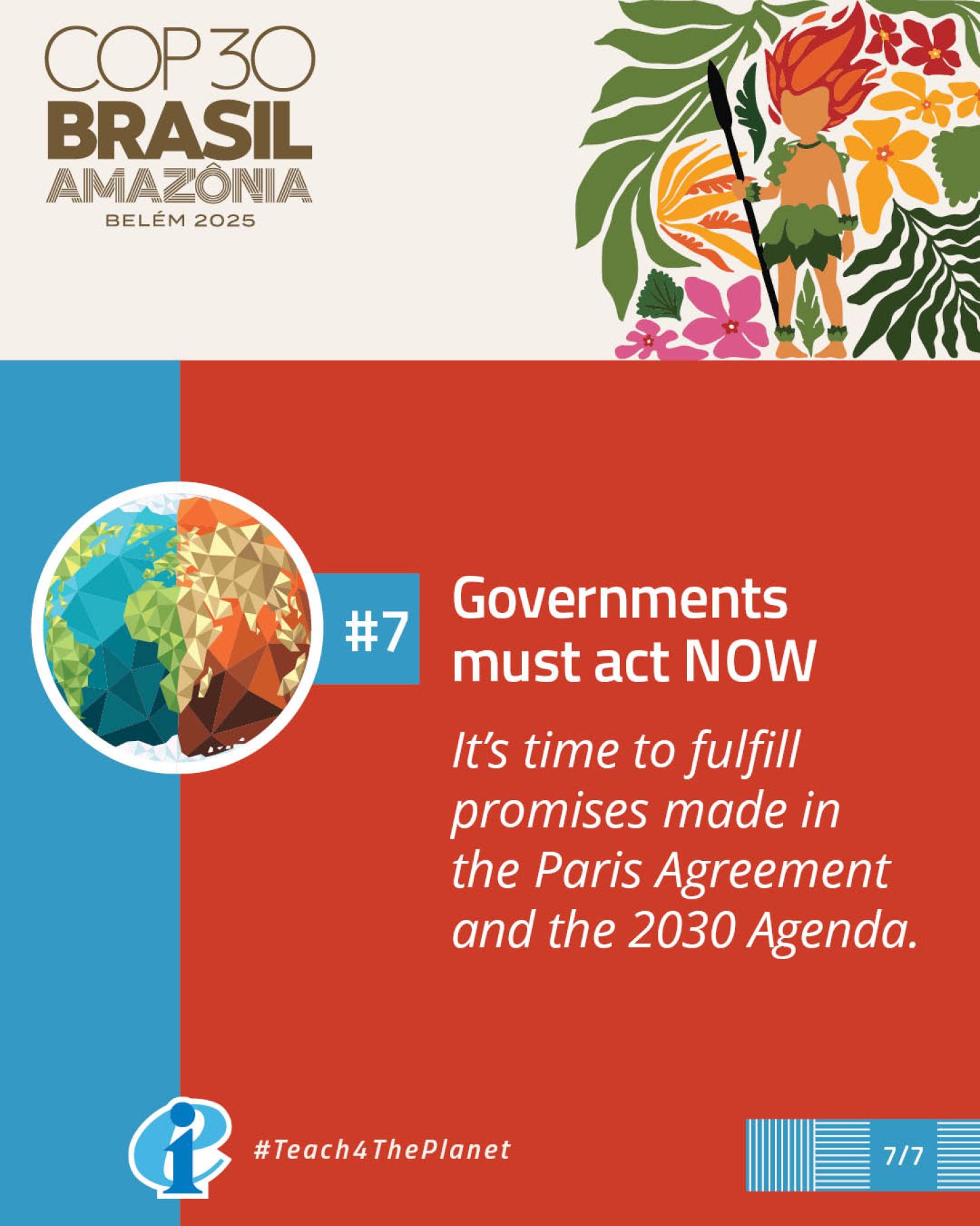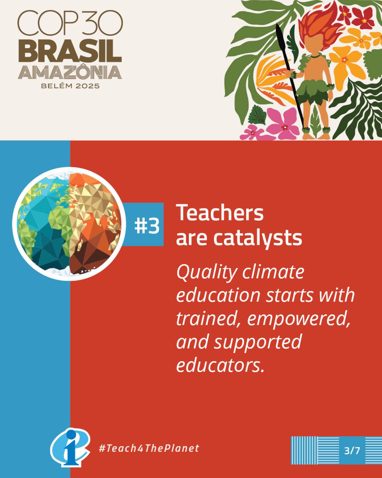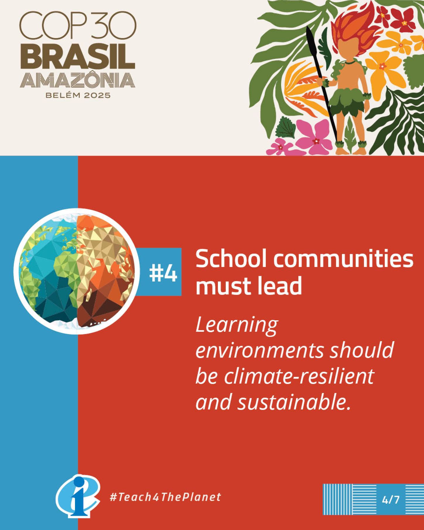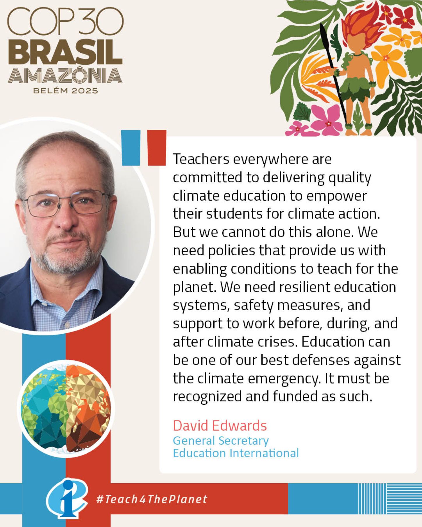 As the world's attention turns to COP30 in Brazil, educators, students, unions, and allies are coming together around the call for governments to provide quality climate education, to build more climate resilient education systems, and to center equity and human rights as part of a just transition to a sustainable future.