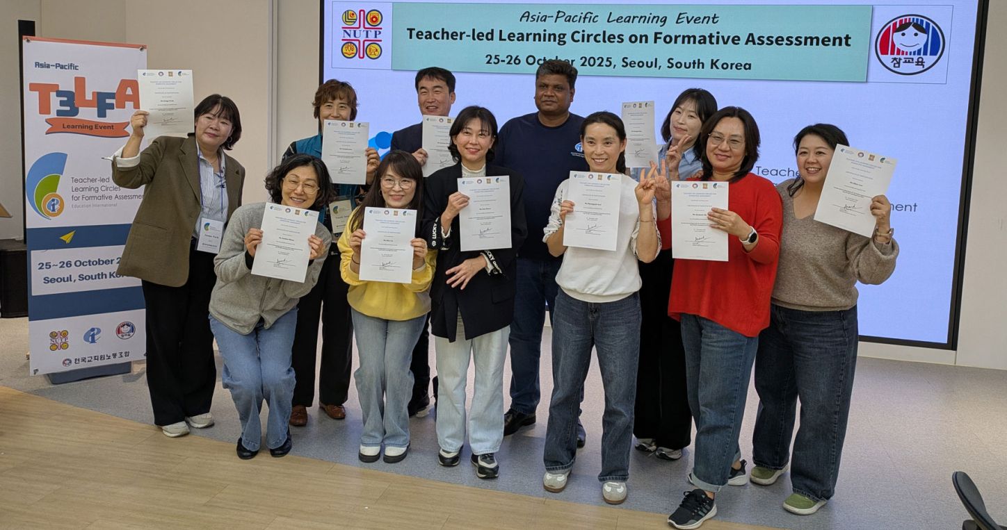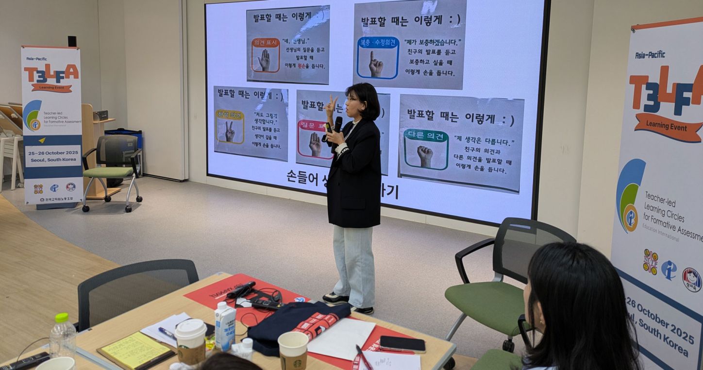 The T3LFA project aims to provide teachers with tools and support to identify and establish effective teacher-led formative assessment practices that can be disseminated within and across education unions. Led by EI with funding from the Jacobs Foundation, it started in 2023 and will operate until 2026 across classroom, national, and international contexts. It is being developed in seven countries, with the support of Education International member organizations – in Asia-Pacific, Malaysia with the National Union of the Teaching Profession (NUTP) and South Korea with the Korean Teachers and Education Workers' Union (KTU).