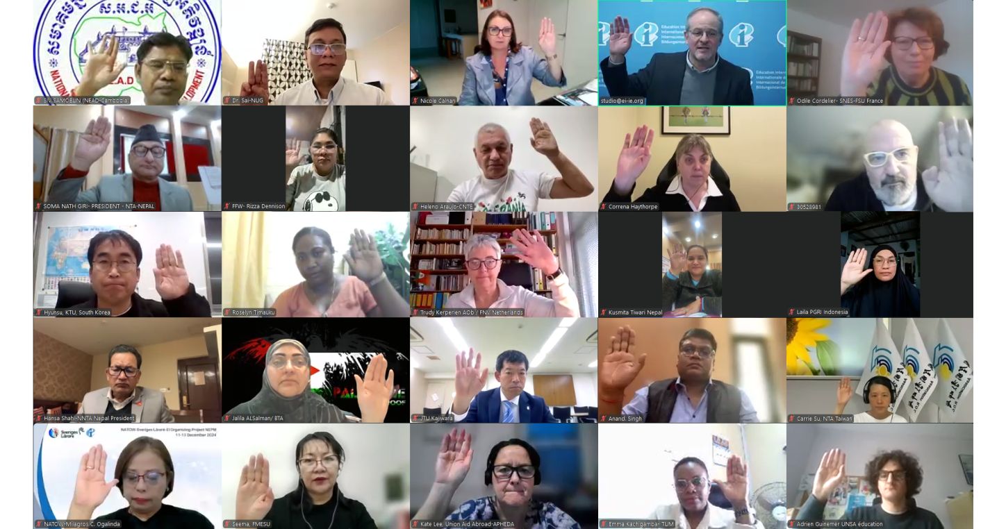 Education International (EI) hosted a global solidarity webinar with Myanmar on 17 November 2025, bringing together education unionists from around the world to stand with Myanmar’s teachers in their fight for democracy, quality education, and human rights under military rule. The overwhelming solidarity expressed by participants during the event reiterated EI's commitment to strengthening its solidarity efforts, including through an upcoming urgent action appeal to all EI member organisations.