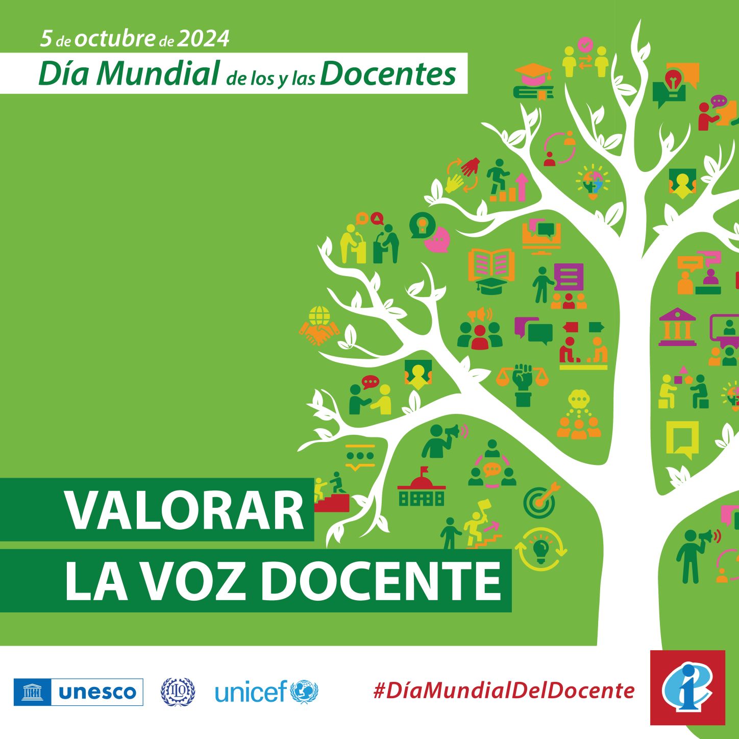 Este Día Mundial de los y las Docentes destaca la necesidad de establecer un diálogo social más sólido con el profesorado en todas partes. Las celebraciones de 2024 se centrarán en "Valorar la voz docente: hacia un nuevo contrato social para la educación". El tema subraya la urgencia de involucrar al personal docente para abordar los desafíos que enfrentan, pero lo más importante, para reconocer y beneficiarse del conocimiento experto y los aportes que traen a la educación.