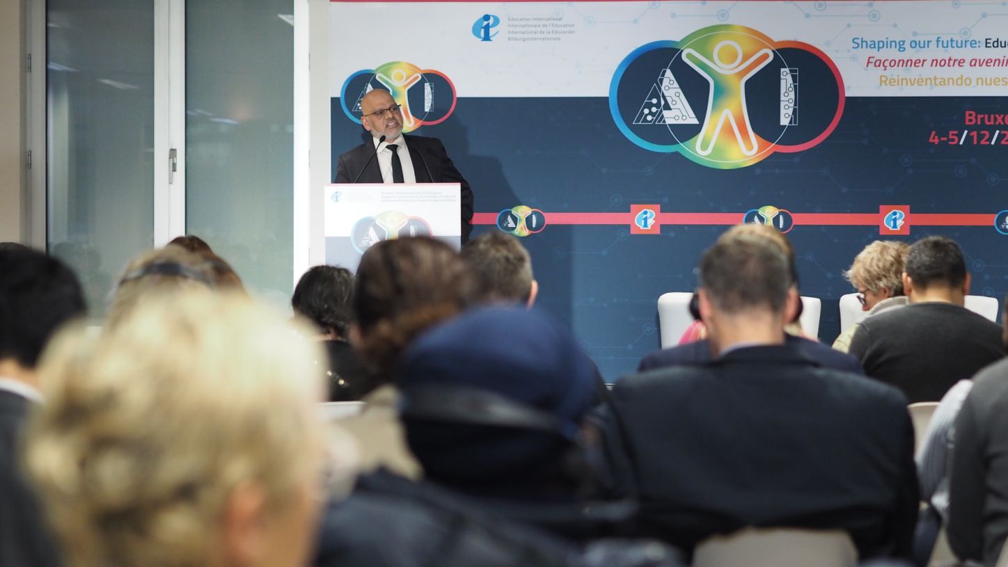 El secretario general de la IE, David Edwards, expuso cinco pilares estratégicos que orientarán la labor de la Organización en materia de IA: crear una red mundial que conecte a los sindicatos; compartir la investigación de vanguardia; fomentar la promoción a nivel internacional y nacional; crear capacidad sindical por medio de la formación y la organización; y ofrecer liderazgo intelectual para mantener al profesorado y a la educación centrada en las personas como protagonistas de las políticas y la práctica.