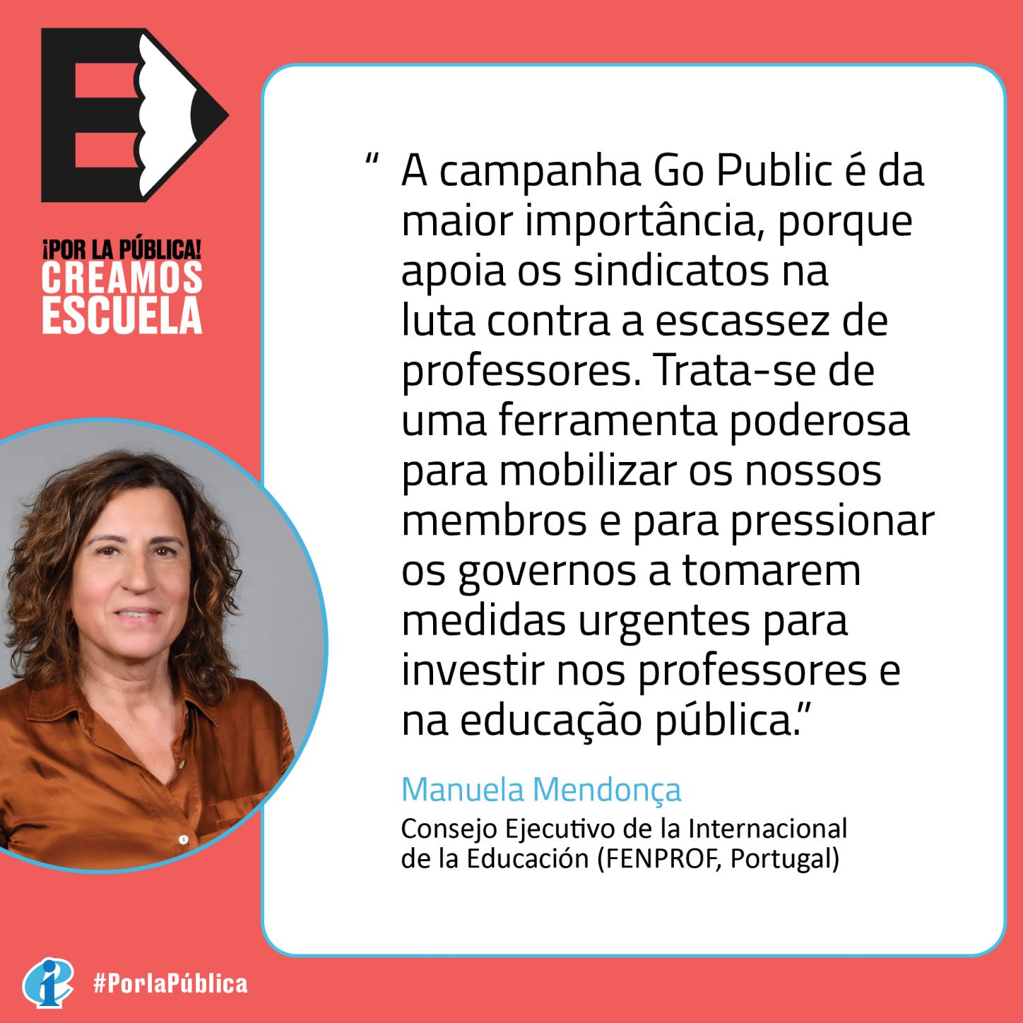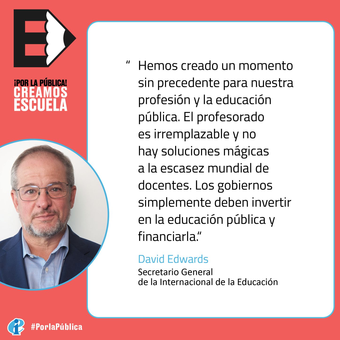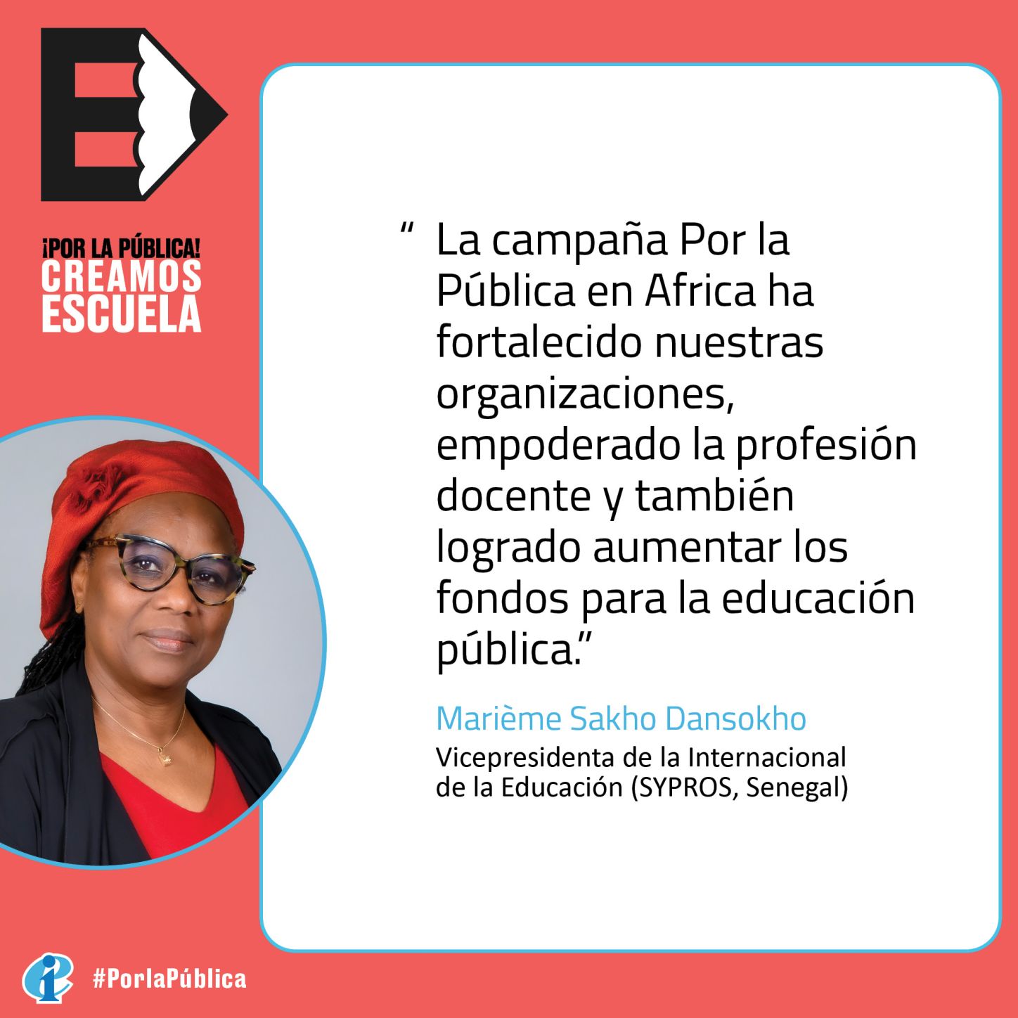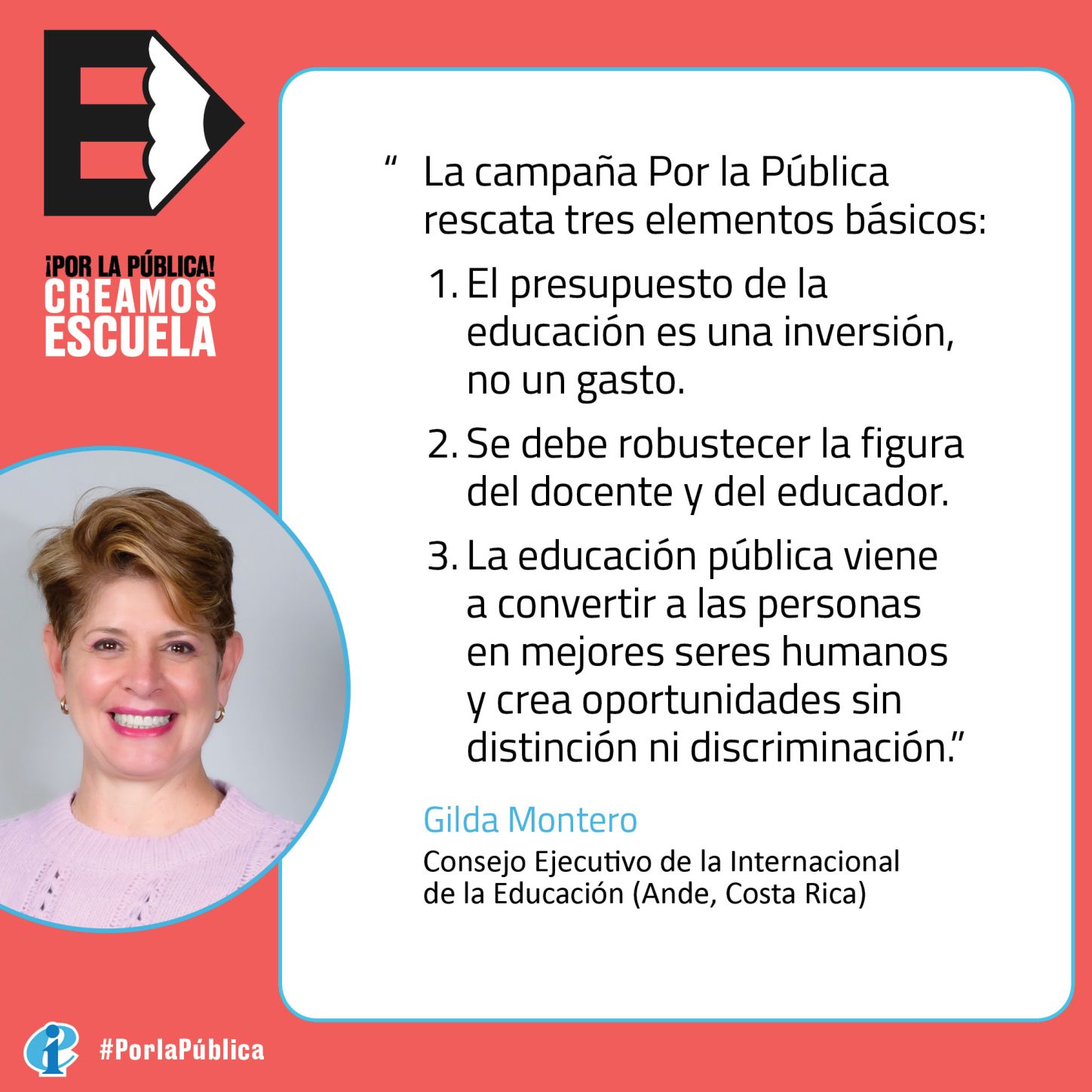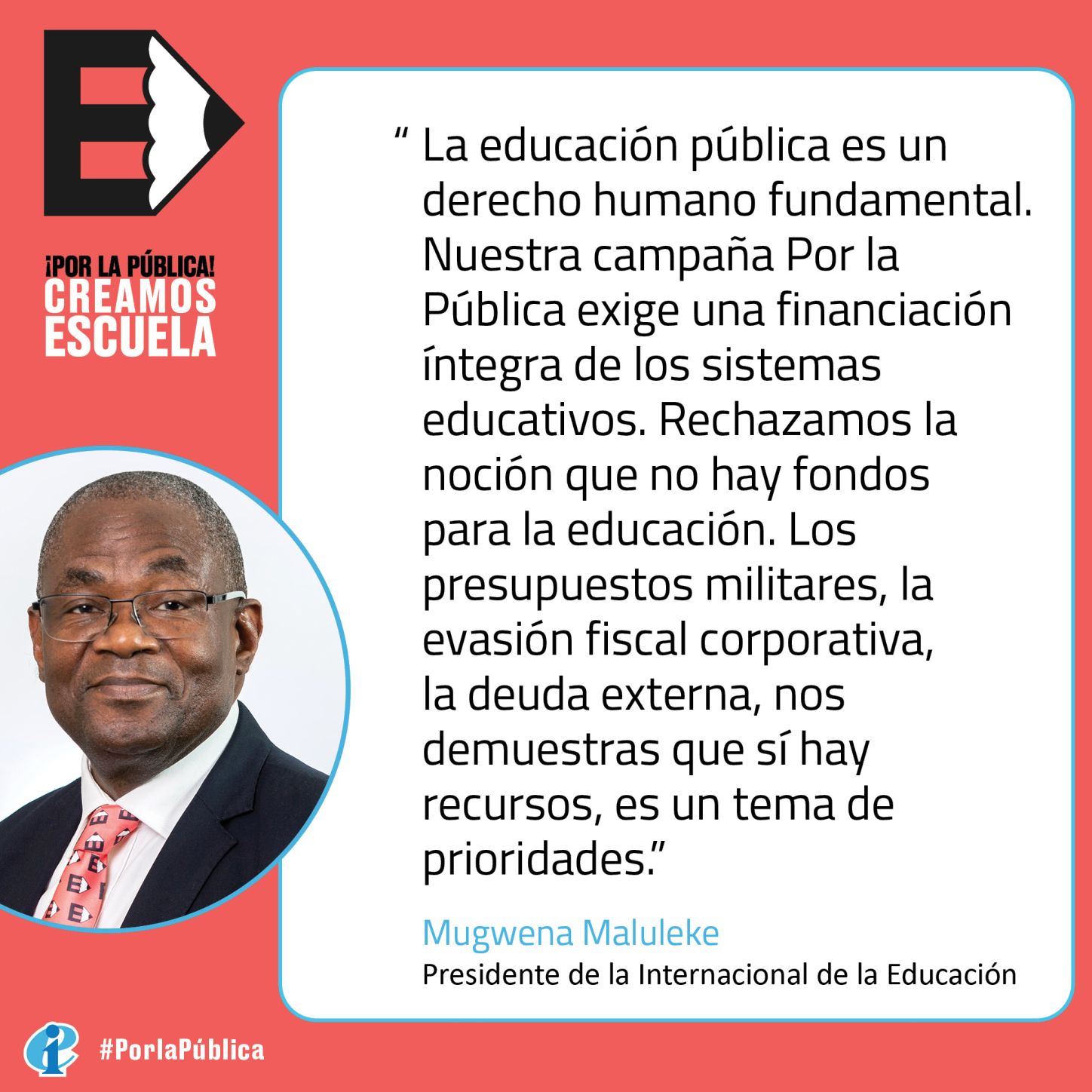 ¡Por la pública! es un llamado urgente a los gobiernos para que inviertan en la educación pública, un derecho humano fundamental y un bien público, y para que inviertan más en el personal docente, el factor más importante para lograr una educación de calidad.