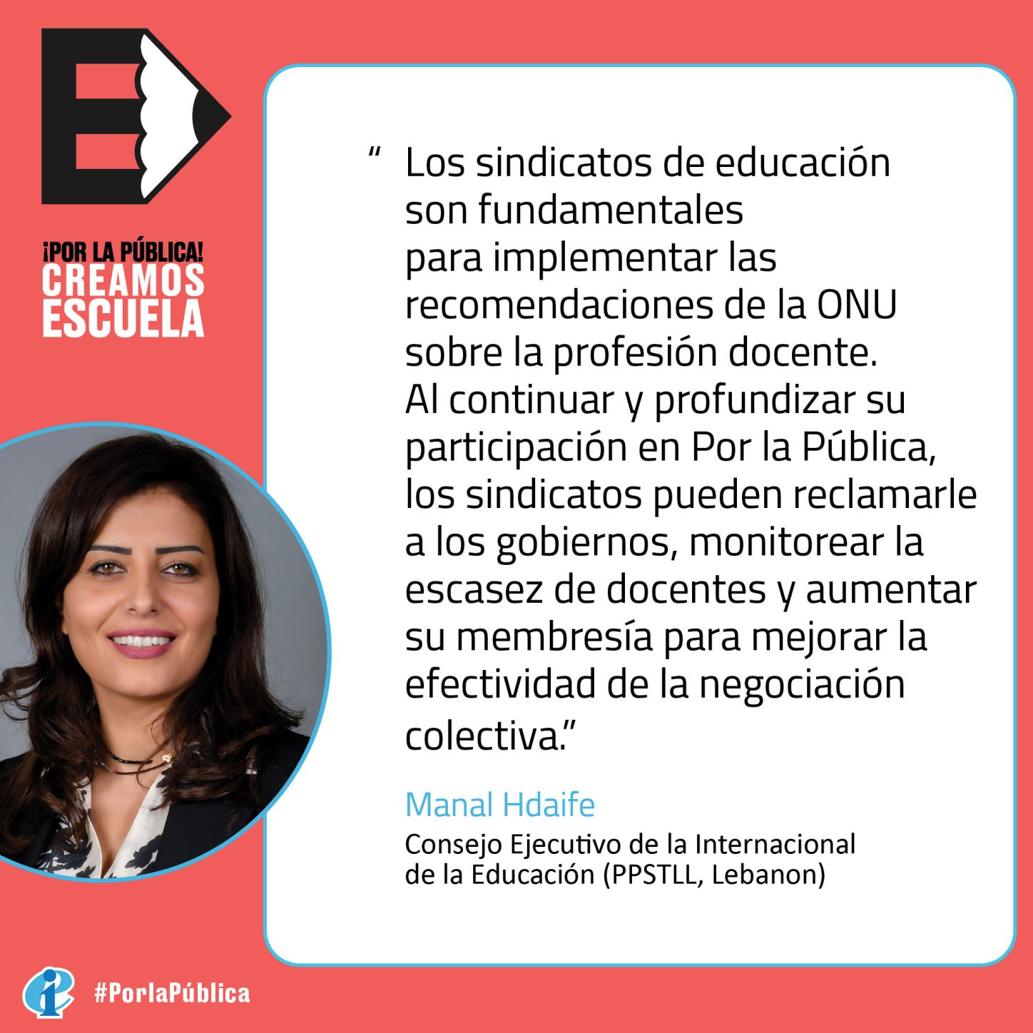 El Día Internacional de la Educación, el 24 de enero, es un momento para reafirmar nuestro compromiso compartido con una educación pública plenamente financiada y con el personal docente que hace posible una educación inclusiva y de calidad. Al celebrar el tercer aniversario de la campaña ¡Por la pública! este kit de comunicación reúne citas de líderes de la Internacional de la Educación de todo el mundo.