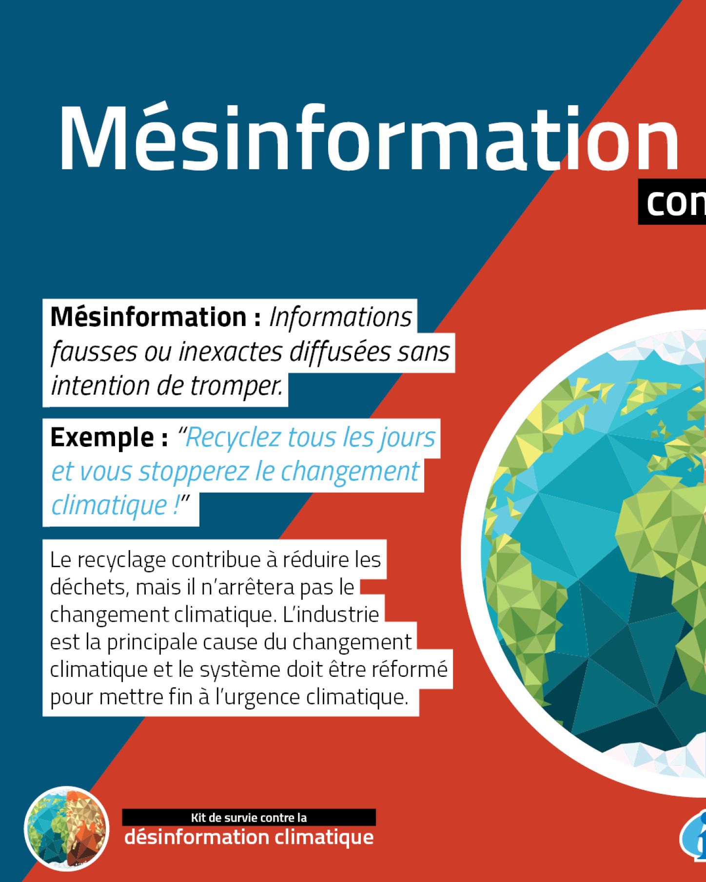 Nous avons élaboré un guide rapide pour les réseaux sociaux avec pour objectif d’aider tout le monde à distinguer la réalité de la fiction et à résister à la désinformation sur le climat. Vous pouvez voir les visuels de ce guide ci-dessous.